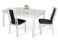 Каркас — массив дуба, цвет выбеленный дуб, обивка — ткань жаккард. Стулья на фото производства Россия.
