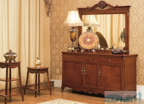 Страна-производитель Китай. Материал - массив  липы, покрытие - шпон бука. Цвет  -орех. Размеры: стол раскладной - 155/185*95*78см, шкаф для посуды-160*48*226см, буфет-169*55*94см,зеркало-125*109см. Цена стол  26 025 руб. Цена стул 8 720 руб. Цена витрина 79 920 руб.