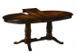 Стол обеденный овальный производства Малайзии с инскрустацией ( шпон, орех, инкрустация). Размеры: 150(+44) на 106.