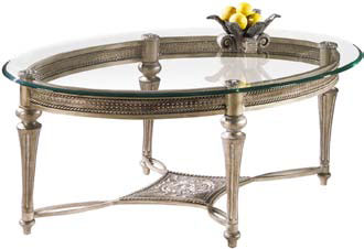 Эта элегантная коллекция изготовлена из кованого железа, покрытого смолой. Столы Галловэй имеют особенности: дизайн стола в форме яйца, обрамленного декоративным шнуром по краю. Конические ножки стола соединены декоративным цветком под 10 мм столешницей из стекла. Оригинальность данной коллекции придает покрытие из шлифованного матового олова с полированными деталями. Производитель: США-Китай